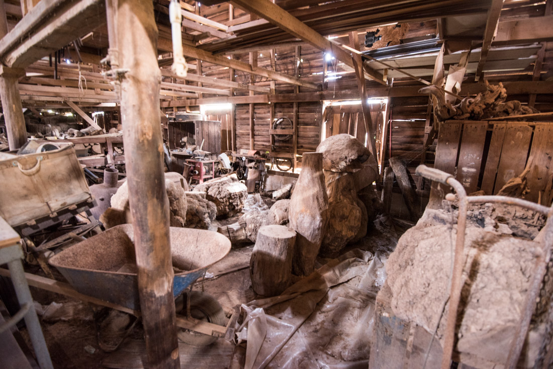 Photos of barn and wood / burls inside.